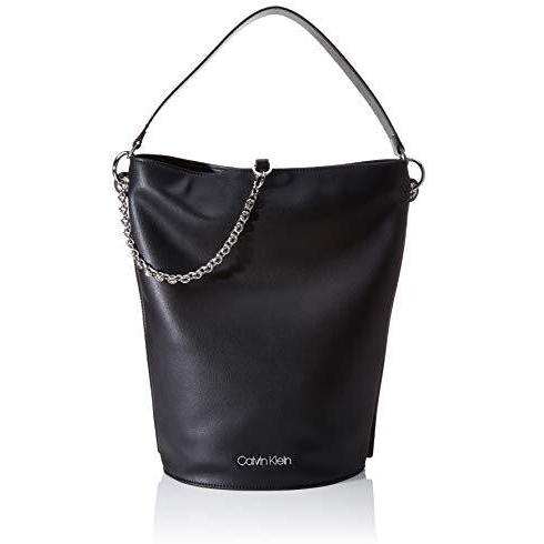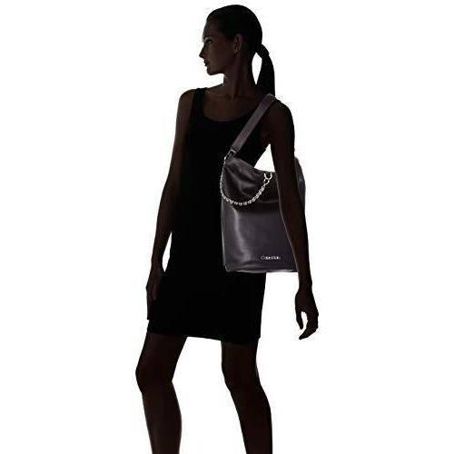 Calvin Klein - Chained Hobo, bolso de hombro para mujer, negro, 18x38x24 cm