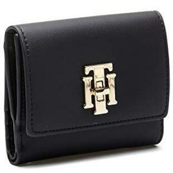 Cartera Tommy Hilfiger negra con logo TH metalizado