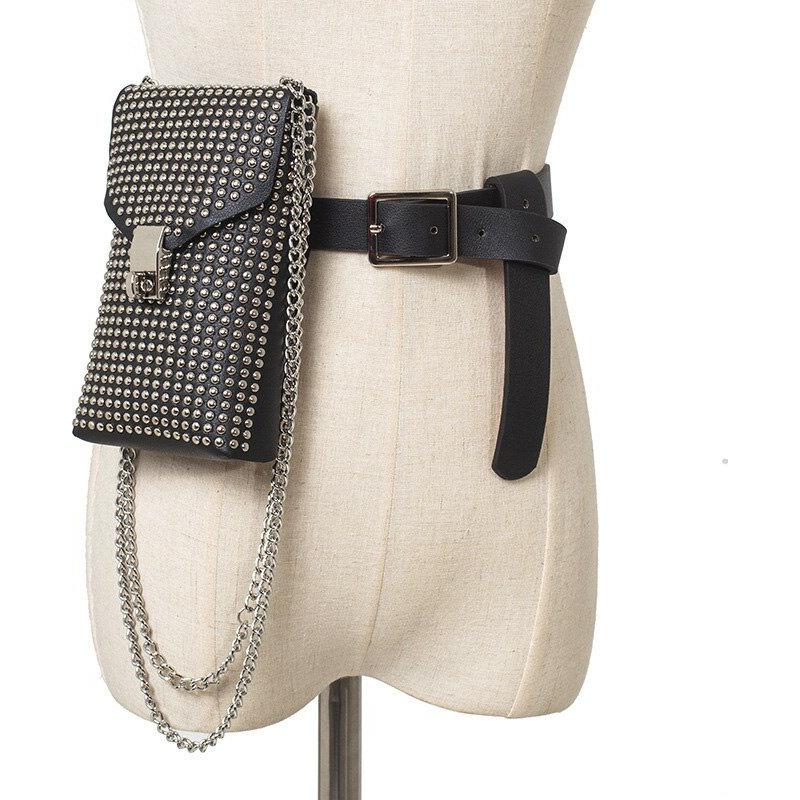 Las mujeres bolso de la correa de cintura Punk remaches Fanny Pack de de bolso de la cintura cadera paquete Retro cadena señoras paquete de la cintura bolsa de teléfono