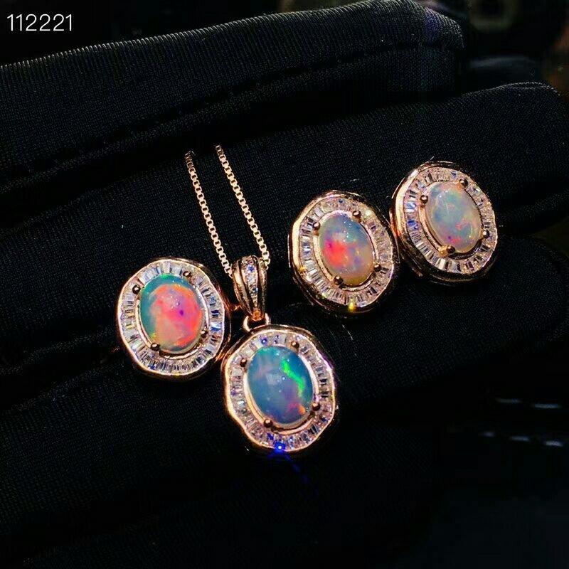MeiBaPJ, pendientes de flores de piedras preciosas de ópalo Natural, anillo y collar, conjunto de joyería fina de 3 piezas para mujer Plata de Ley 925 auténtica
