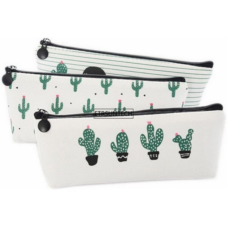 Estuche de lápices de lona para estudiantes, 12 Uds., estuche para bolígrafos, monedero, bolsa de maquillaje cosmético, vendaje Pastoral de Cactus