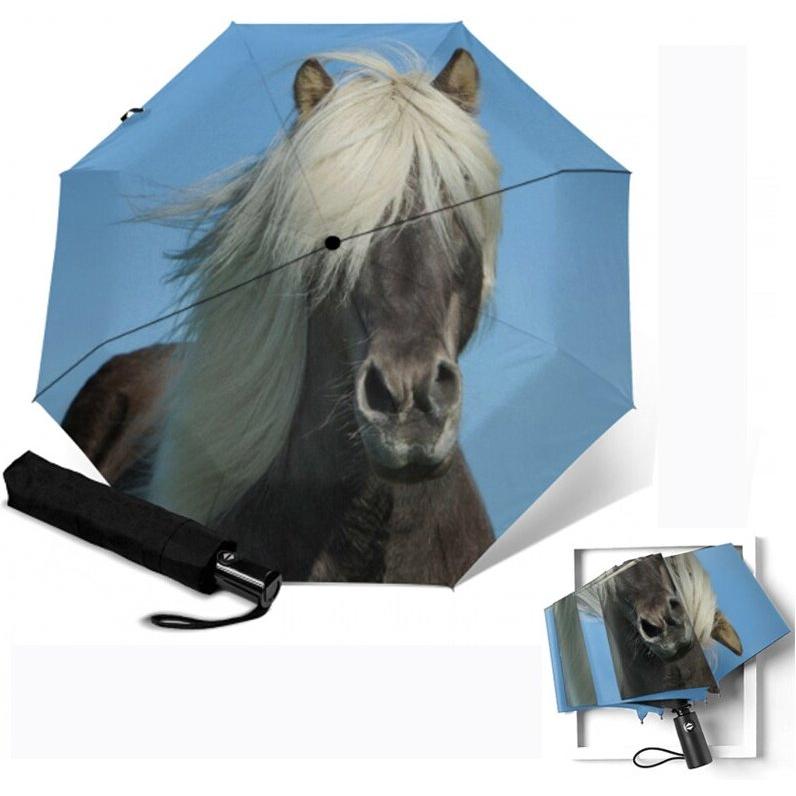 Paraguas automático con estampado con caballos, sombrilla de lujo automática con 8 costillas Anti-UV, tres paraguas de lluvia plegables, sombrilla esmerilada con manija, equipo de lluvia