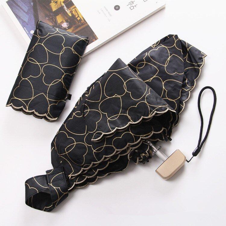 Cinco plegados de corazón, sombrilla para mujer, miniparaguas plegable ultraligero de bolsillo ligero para niños, sombrilla soleada y lluviosa, hermoso , Paraguas