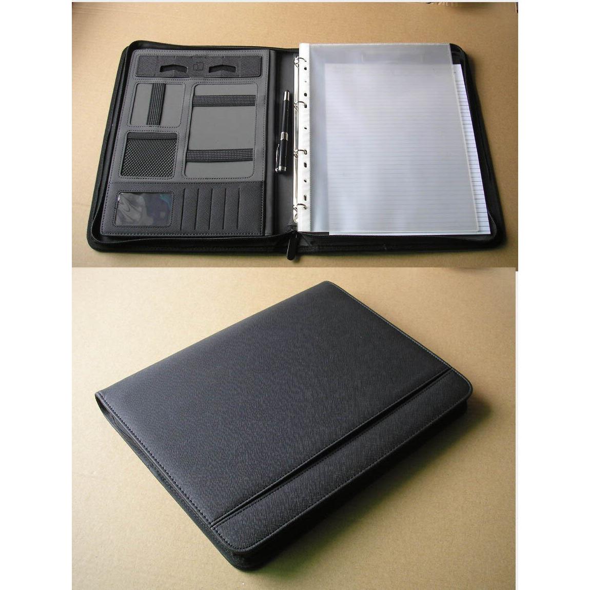 Bolso ejecutivo de cuero A4 con cremallera para documentos, maletín con carpeta de anillas, ipad, iphone, soporte móvil, 1235B