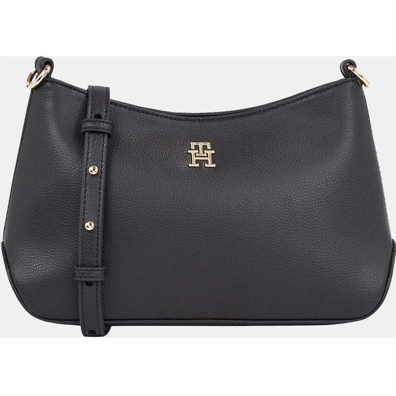 Tommy Hilfiger - Bandolera negra con logotipo metalizado.