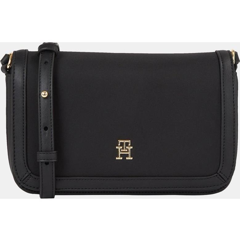 Tommy Hilfiger - Bandolera mediana en negro con bolsillo frontal y logo