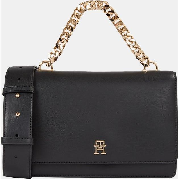 Tommy Hilfiger - Bandolera negra con logotipo dorado