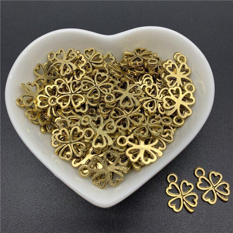 30 unids/lote de cuentas de aleación de 17mm, abalorios antiguos con forma de trébol de cuatro hojas, dijes para fabricación de joyas, accesorios DIY