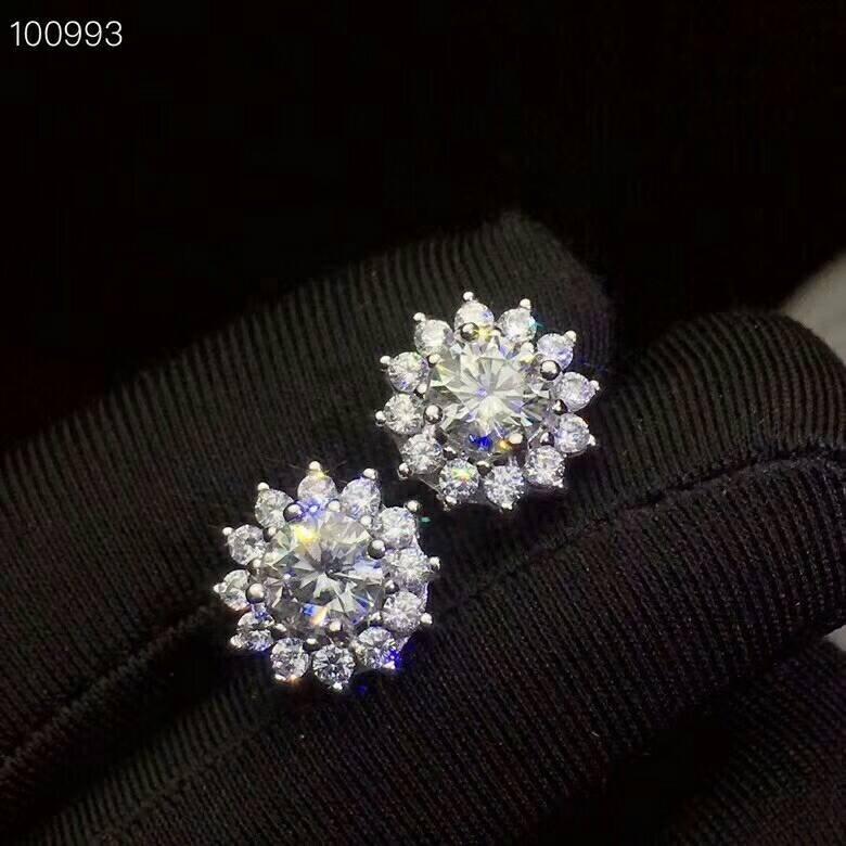 [MeiBaPJ] pendientes de broche de molissanita Natural de , pendientes de flores de Plata de Ley 925, joyería fina para mujer