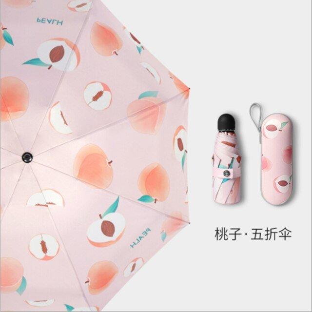 Fruta seis sosteniendo paraguas de sol protección sombrilla plegable con protección UV sombrilla de mujer lluvia de doble uso cápsula compacto portátil de bolsillo