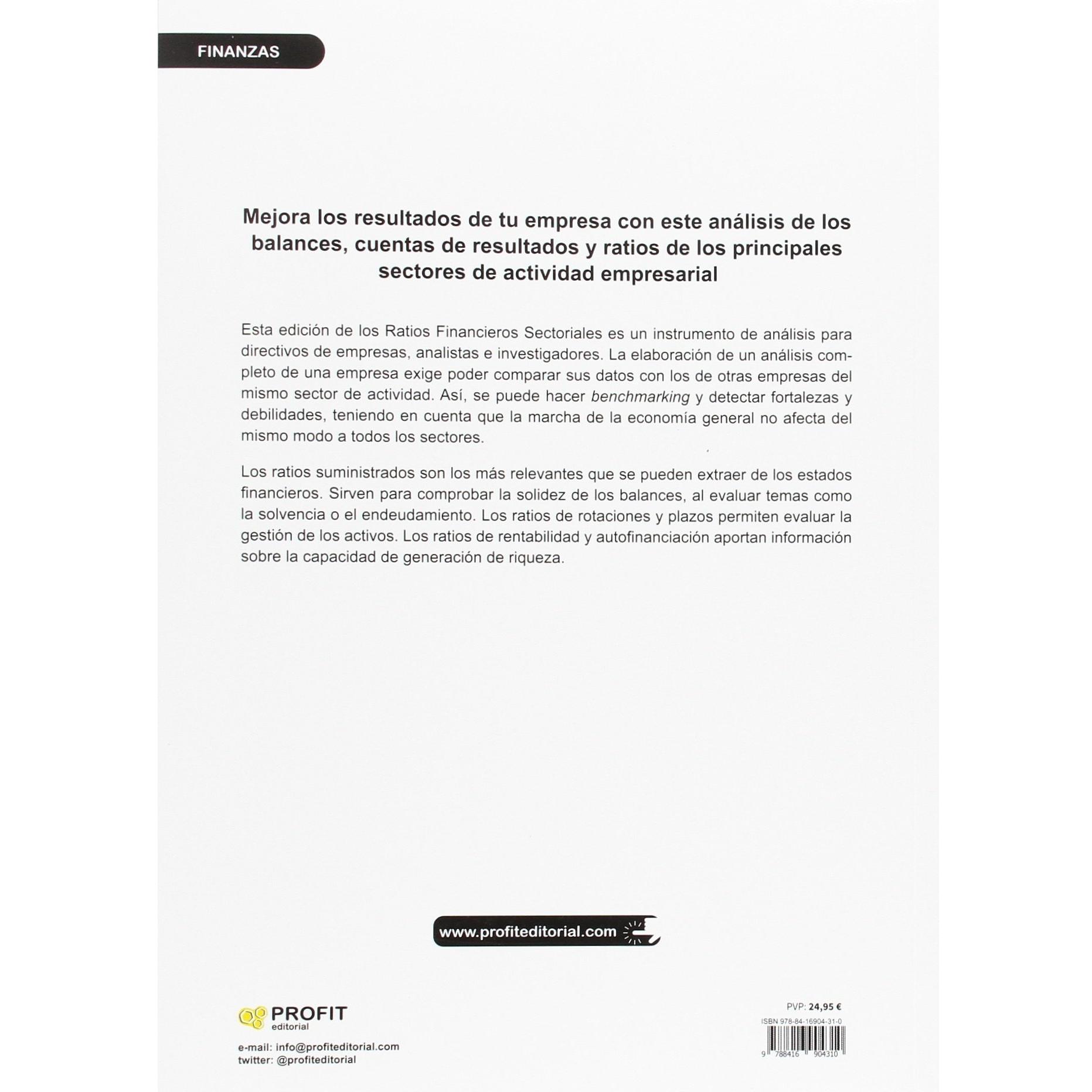 Ratios sectoriales: Cuentas anuales (balances y cuentas de resultados) de 166 sectores. 25 RATIOS por Sector