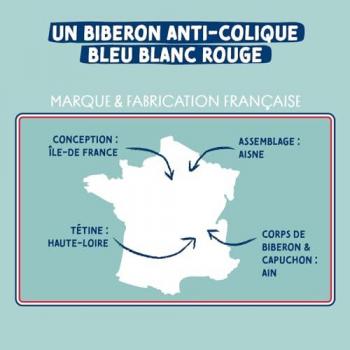 Biberon en verre avec tétine ronde et anti-colique, adapté aux bébés de 0 à 6 mois