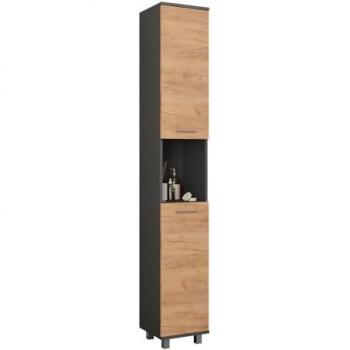 Vicco - Armoire Haute Ilias, Anthracite/chêne Doré, 30.2x190cm Avec 2 Portes