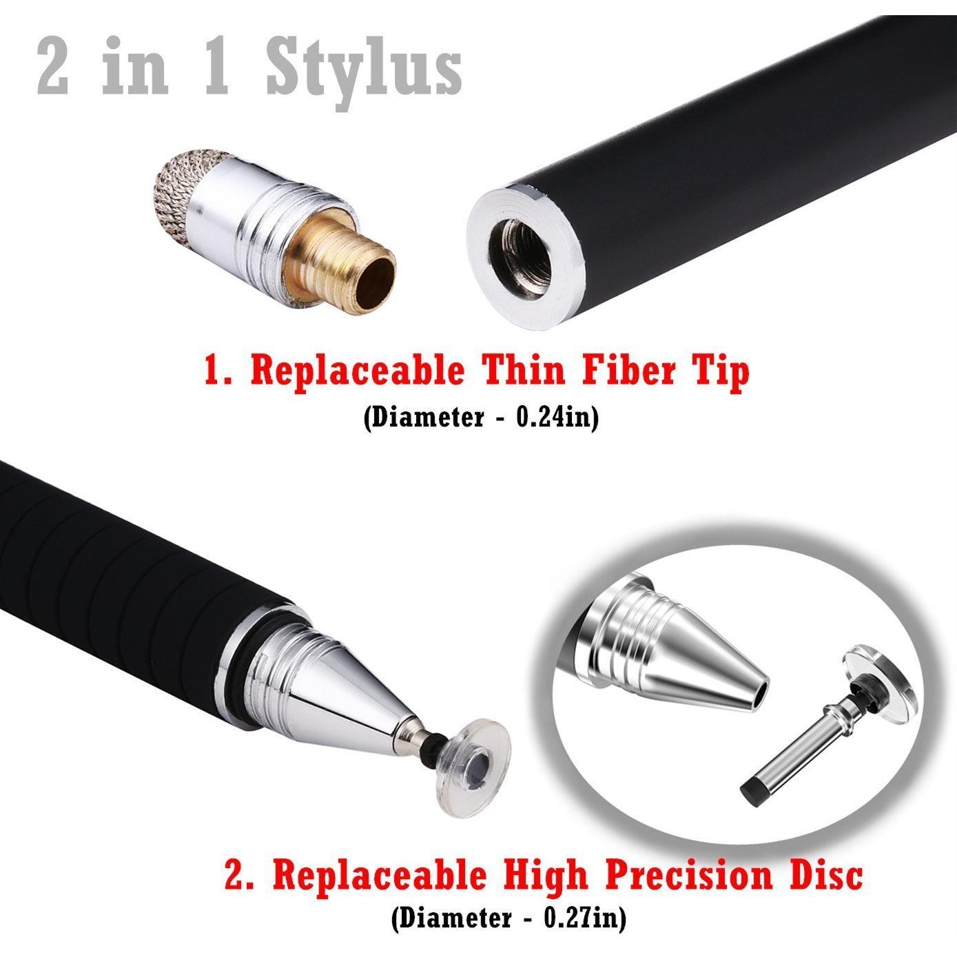 Pennino Capacitivo con Punta in Fibra e Punta a Disco 2-in-1 per Telefoni Cellulari e Tablet Touch Screen Nero