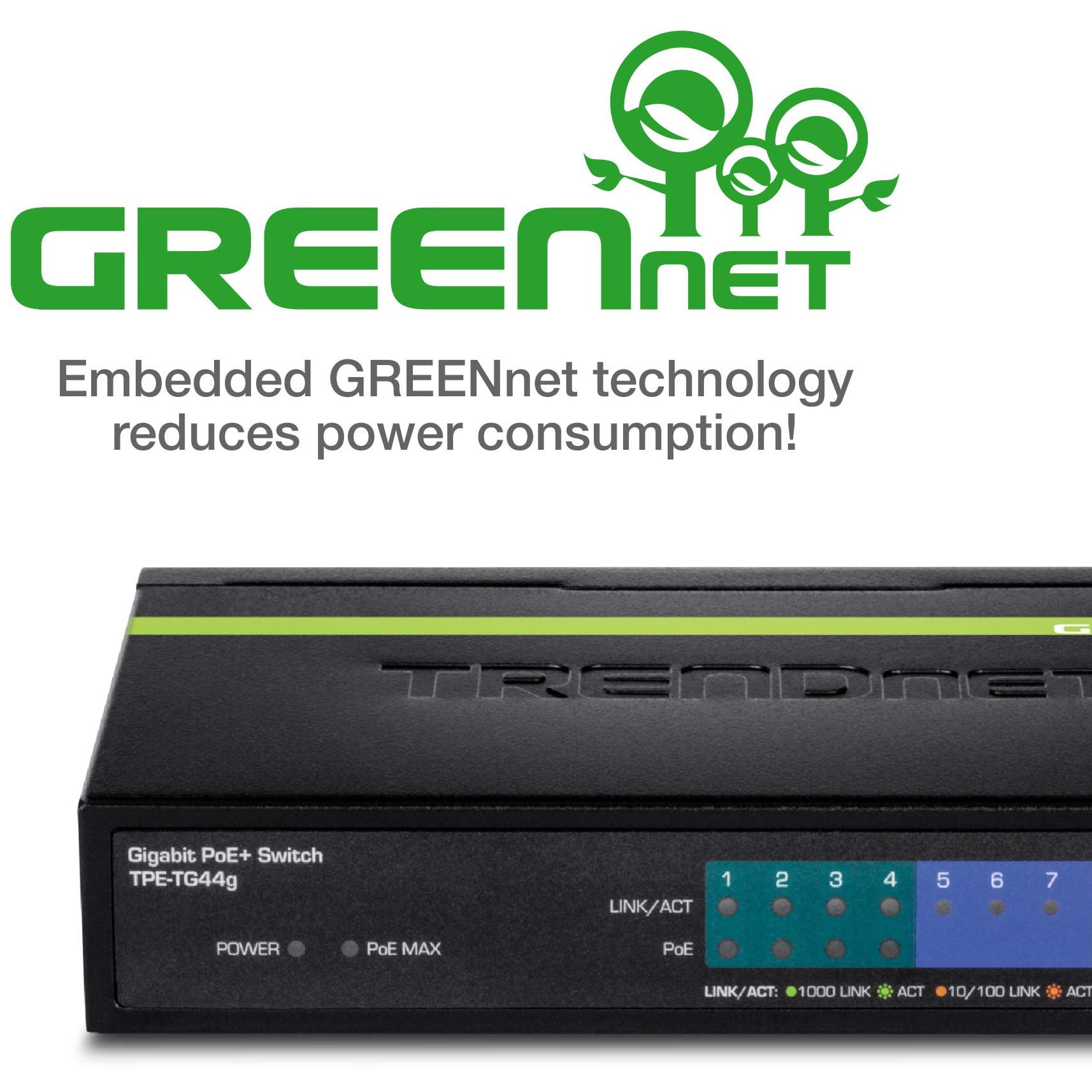 Switch PoE+ TRENDnet TPE‑TG44g 8P Gigabit GreenNet