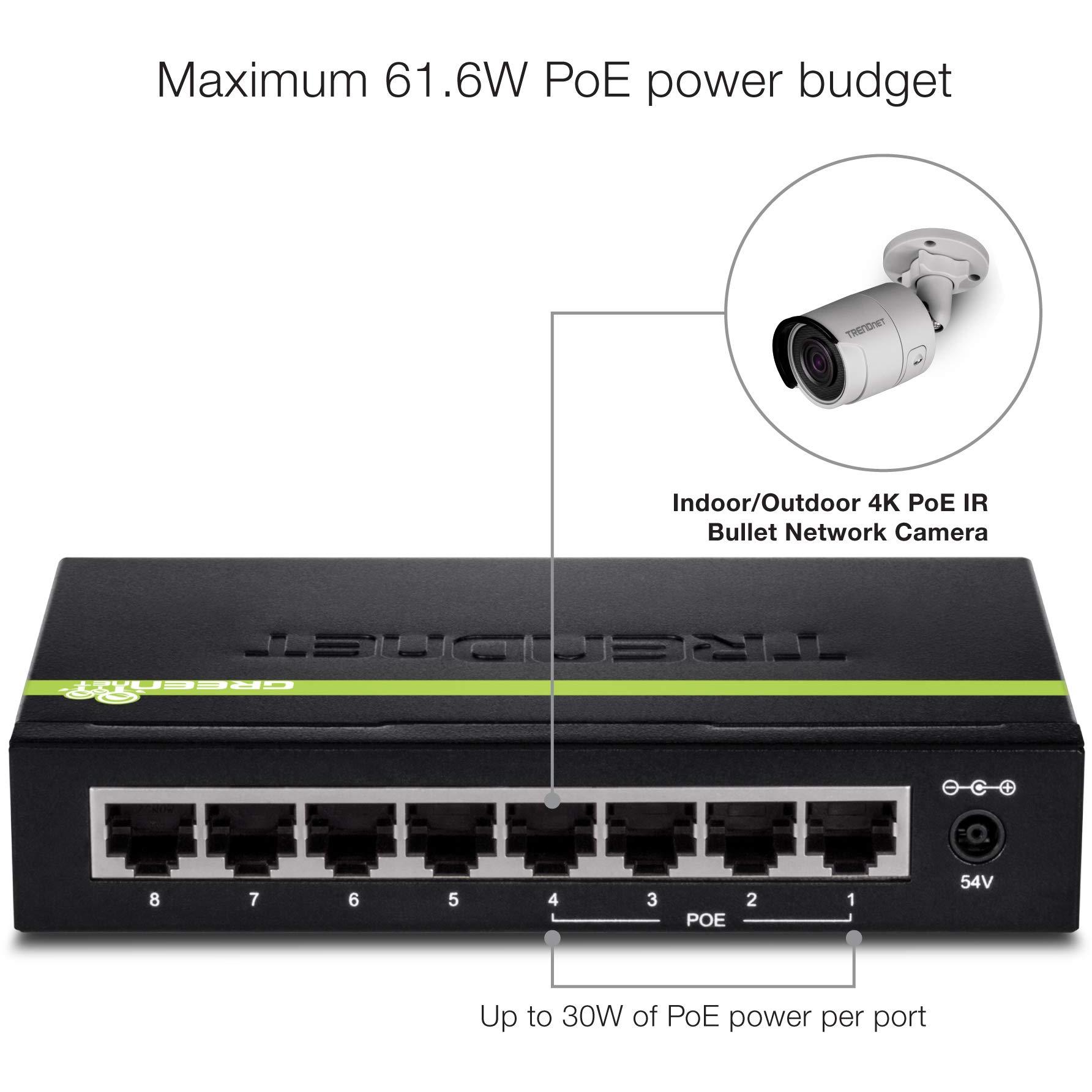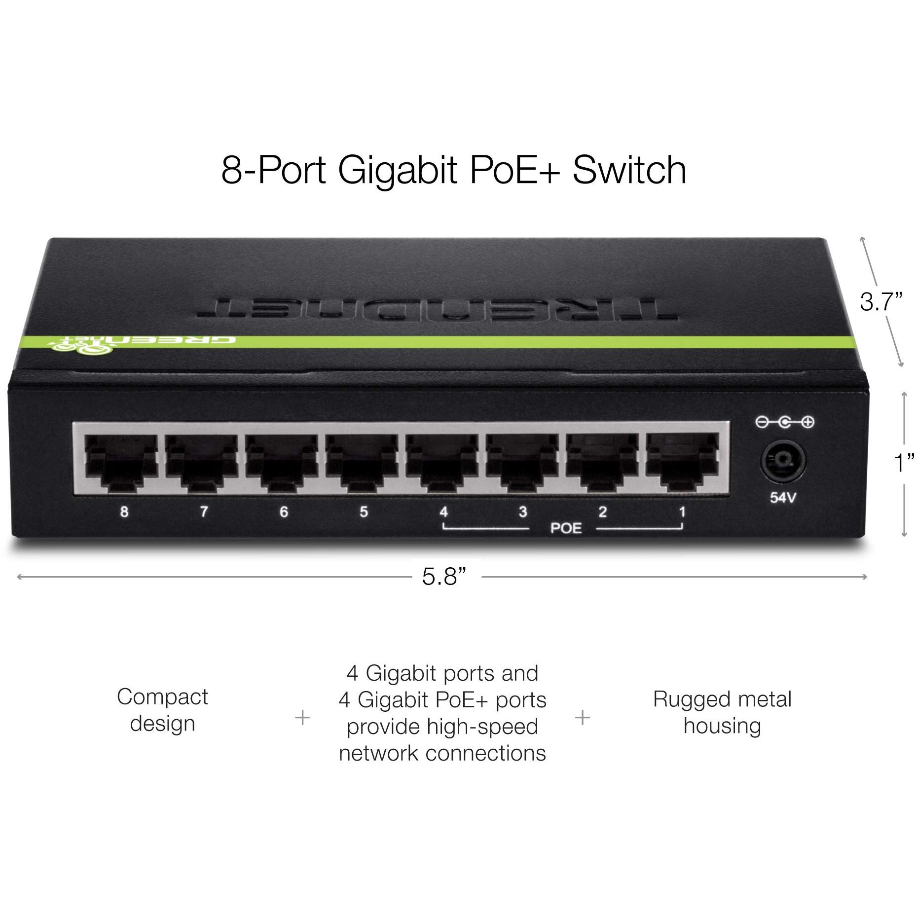 Switch PoE+ GREENnet TRENDnet TPE‑TG44g è un connettore nero a otto porte Gigabit, quattro delle quali forniscono fino a 30 W ciascuna per alimen ...