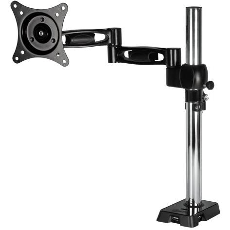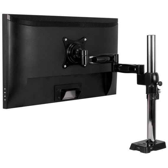 Braccio nero per monitor fino a 30 in che si fissa alla scrivania, con hub USB a quattro porte integrato. Offre rotazione completa, inclinazione e e ...