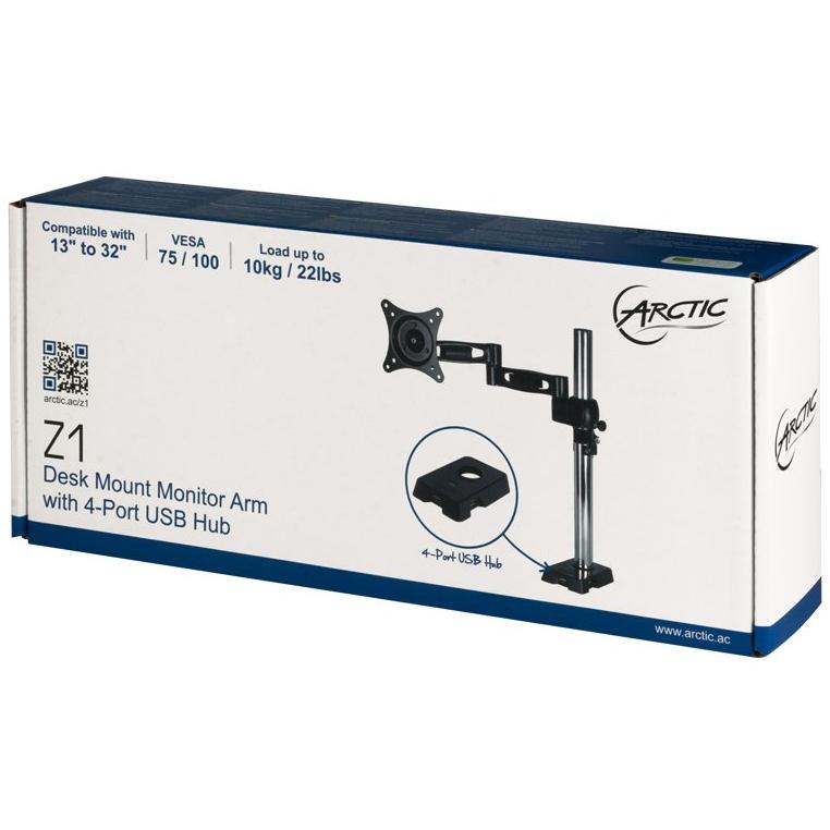 Braccio per monitor Arctic Z1 da 13" a 30", USB con 4 porte, nero