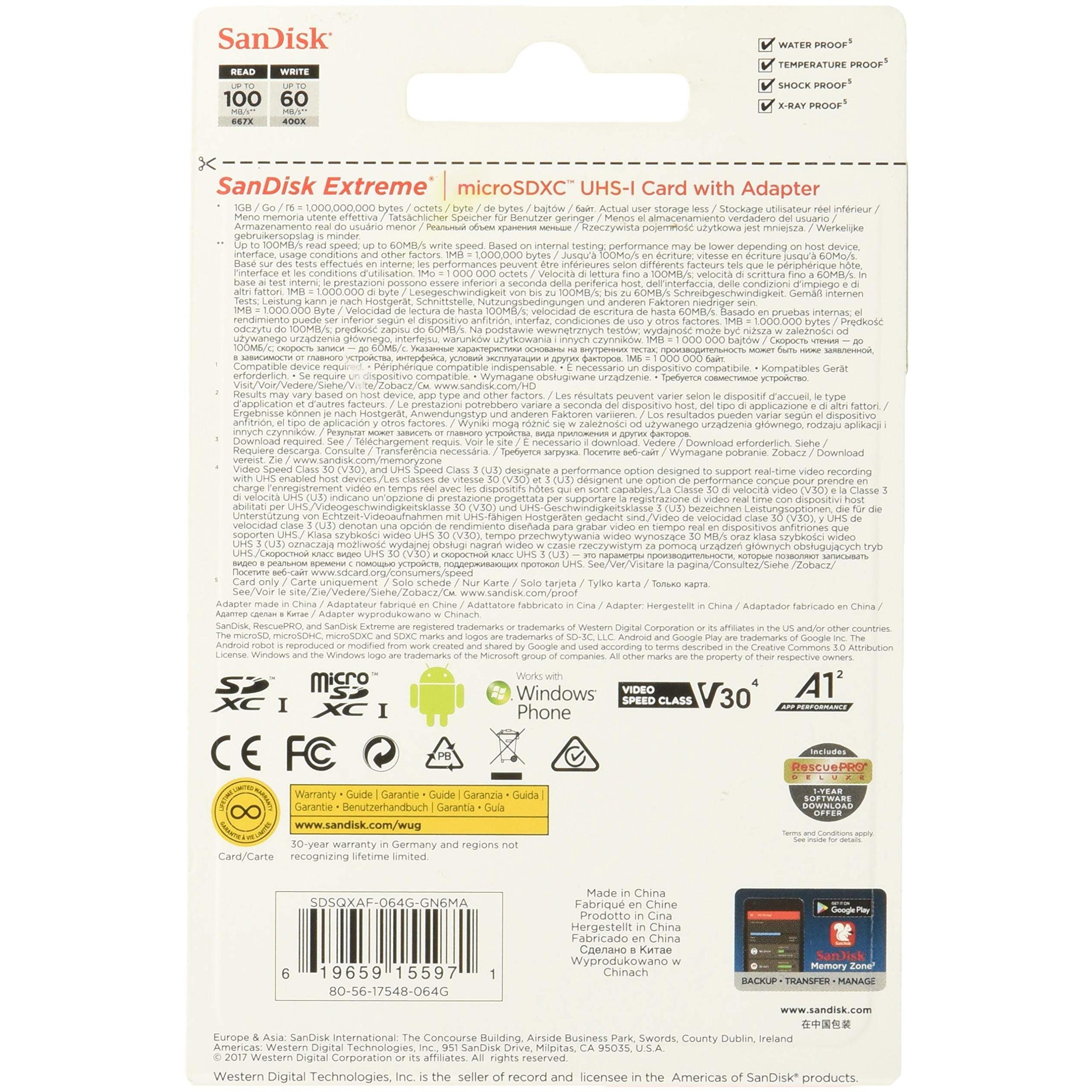 SanDisk Extreme 64 GB microSDXC + adattatore SD