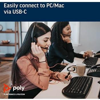 Poly Blackwire C3220 (Cablato, USB-C), Cuffie da ufficio, Nero, Rosso