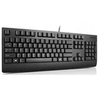 Tastiera Lenovo KB MICE_BO in nero con layout QWERTY UK, full‑size e design lineare. Si collega tramite USB, pesa 850 g e consente l’altezza reg ...