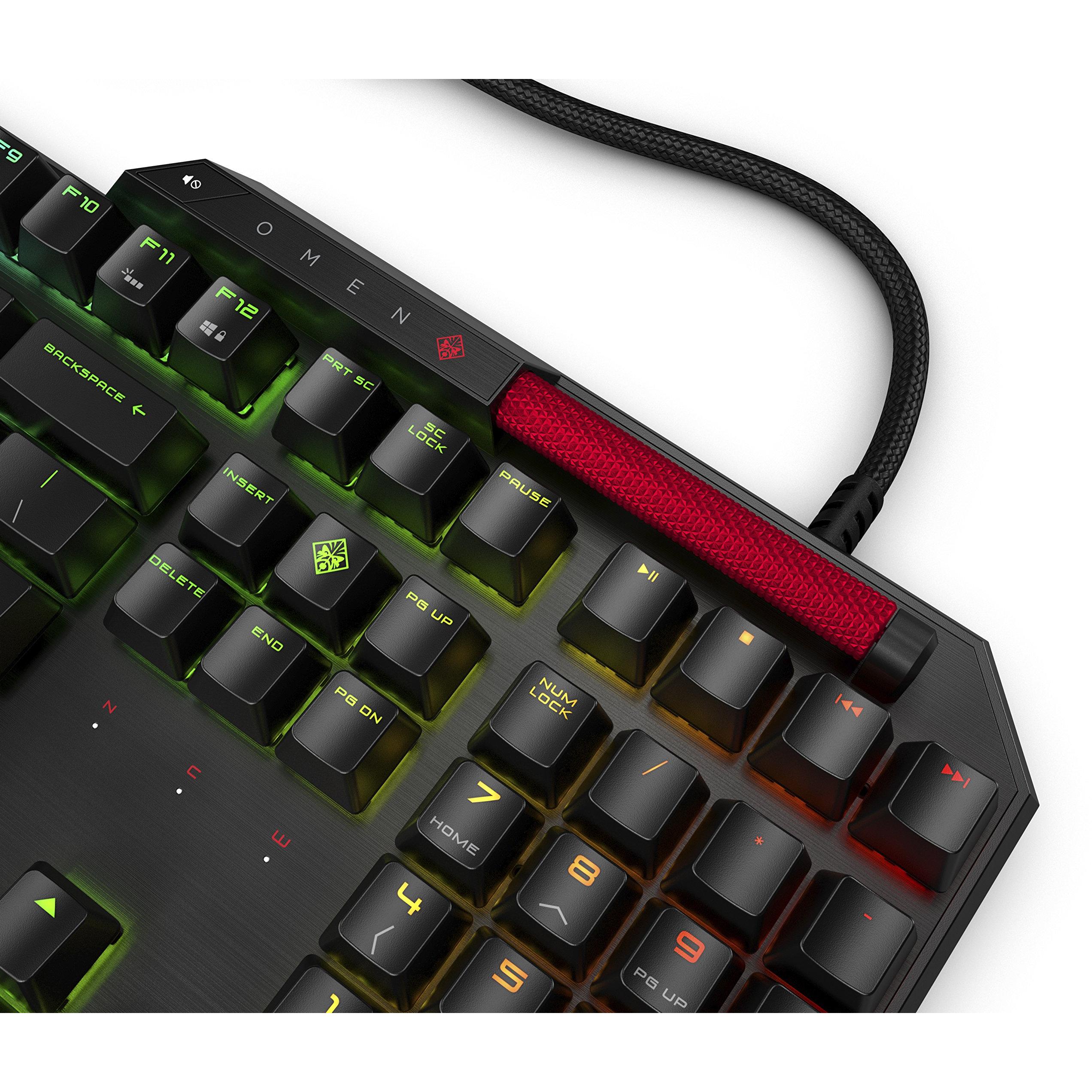 HP Gaming Omen Sequencer Tastiera Ottico Meccanica, Switch Blue, Tempo Risposta 0.2 ms, 5 Tasti Programmabili, Illuminazione RGB, Regolazione Volume Rollover Bar Metallo, Layout Italiano, USB, Nera