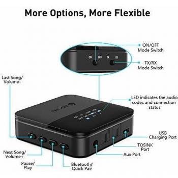 Ricevi e trasmetti audio senza fili con il ricevitore‑trasmittente Bluetooth 5.0 SONRU, compatibile TOSLINK, RCA e AUX. Supporta aptX HD per suono a ...