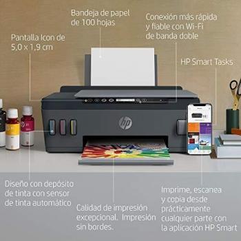 HP Smart Tank Plus 555 Stampante Multifunzione con Serbatoio a Getto di Inchiostro, Scanner, Fotocopiatrice, Velocità 11 ppm Nero e 5 ppm Colori, Wi-Fi, Wi-Fi Direct, App HP Smart, USB, Nero