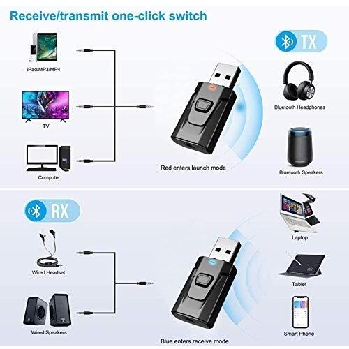 Aigoss Bluetooth USB 2‑in‑1 Trasmettitore e Ricevitore 5.0