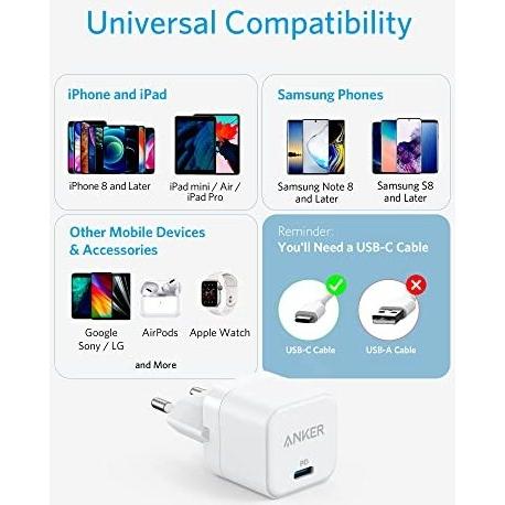 Caricatore rapido 20W per iPhone 13/13 Mini/13 Pro/13 PRO Max/12, Galaxy, Pixel 4/3, iPad PRO e Altro (Cavo Non Incluso)