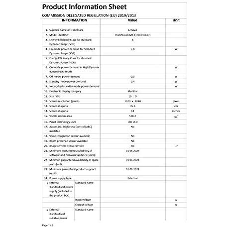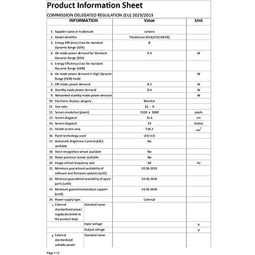Lenovo - 0195042391596 - B08K4Q2ND1 - ThinkVision M14t - 68 mm - Non - -90 - 90° - 178° - Blocco cavo - Kensington - Da USB tipo C a USB tipo C - Tà ...