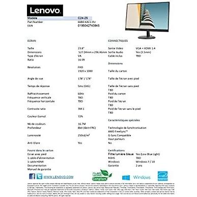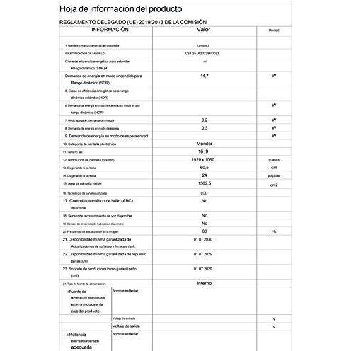 Lenovo C24-25 Monitor LED (1920 x 1080 pixel, 23.80"), Monitor, Nero