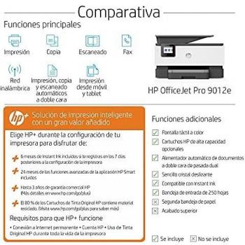 HP OfficeJet Pro Stampante multifunzione HP 9012e, colore grigio, per piccoli uffici, stampa, copia, scansione e fax, HP+ idoneo per HP Instant Ink, alimentatore automatico di documenti, stampa fronte/retro