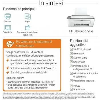 HP DeskJet 2720e Stampante Multifunzione a Getto d'Inchiostro a Colori - Bianca