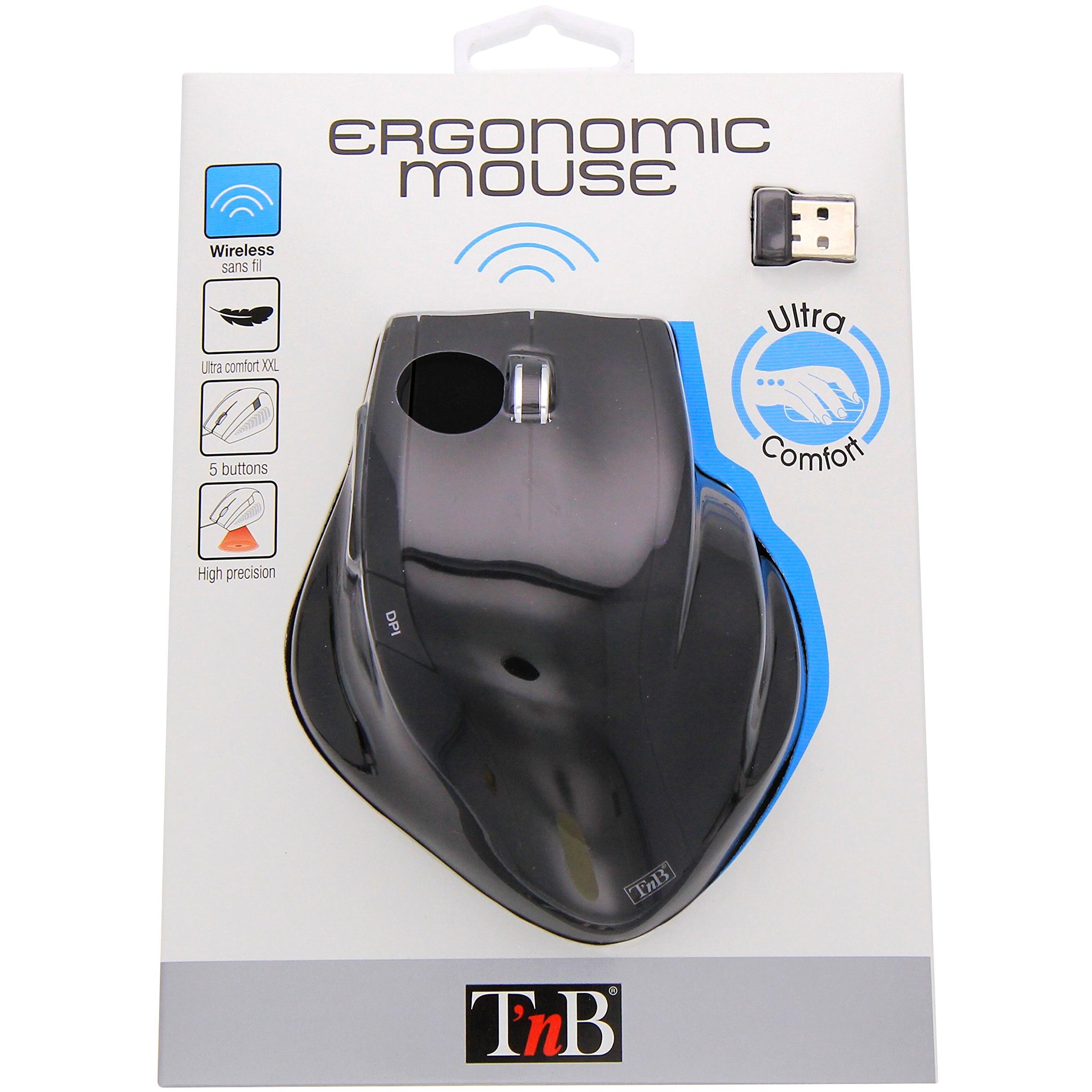 Mouse T'nB Ergo Line nero, wireless con sensore ottico da 1600 DPI e connessione RF a 2,4 GHz. Il suo profilo ergonomico si adatta al polso per ridu ...