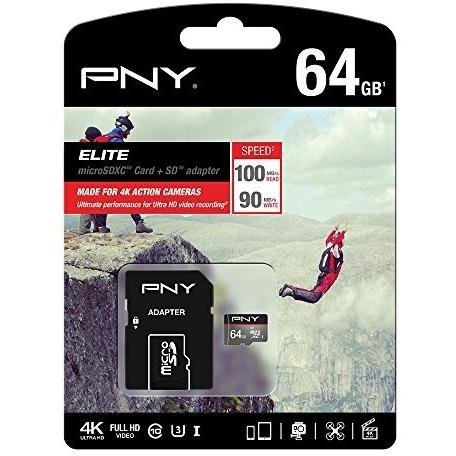 Scheda microSDXC PNY Elite Performance da 64 GB con lettura di 100 MB/s, classe U3 e UHS‑I. Resistente a temperature fino a 60 °C e umidità ...