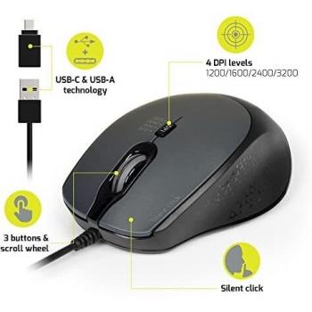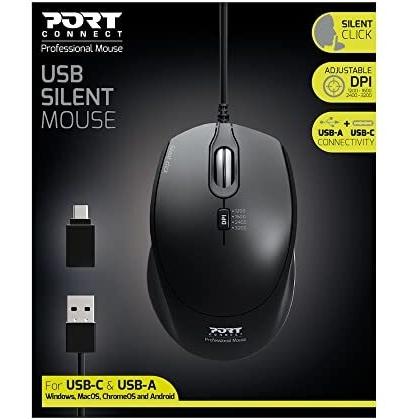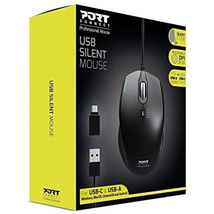 PORT CONNECT Mouse Cablato Silenzioso 3200 DPI - Nero