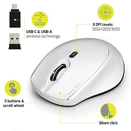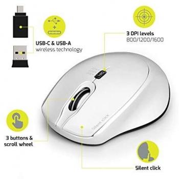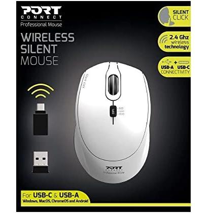 Port Connect Mouse Wireless e Silenziatore Wireless 2.4 GHz USB-A/USB-C Compact Bianco