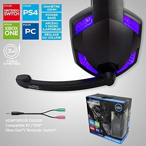 AMSTRAD - Cuffie Pro Gamer Per Pc / Switch / Ps4 / Xbox Cavo 3 Metri Led, Nero