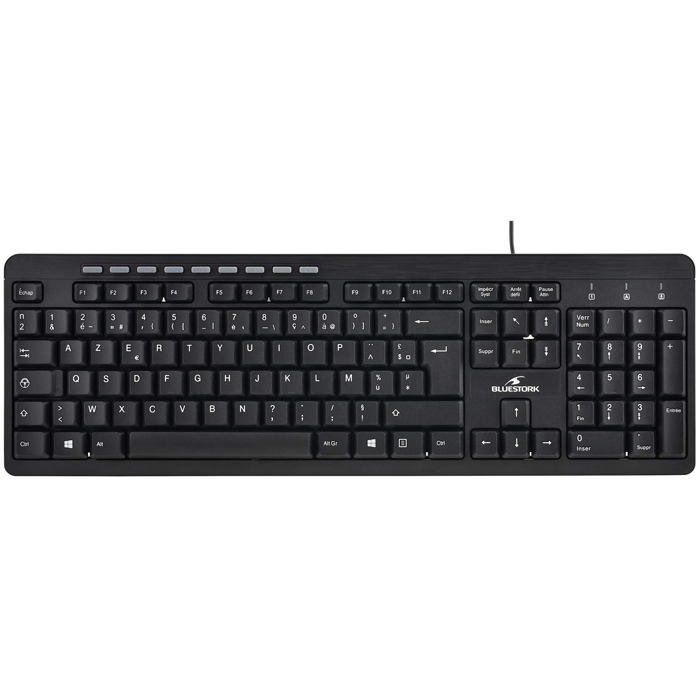 Bluestork Clavier filaire compatibile Media First 2 USB (Noir) (FR, Cablato), Tastiera, Nero
