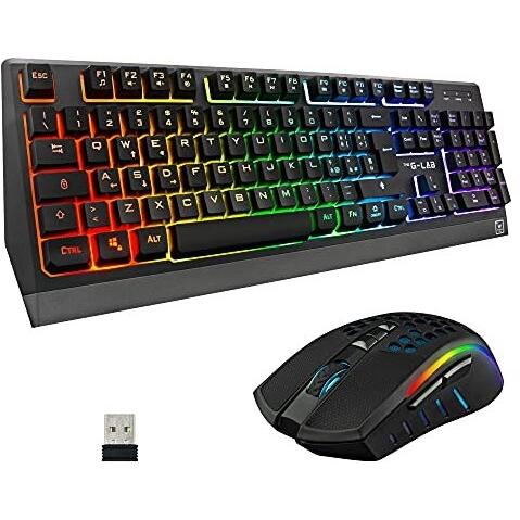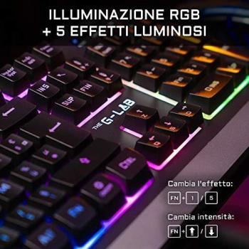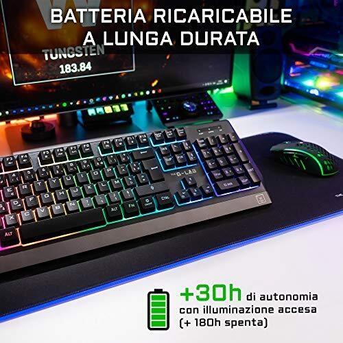 THE G-LAB Combo TUNGSTEN - Tastiera da Gaming Wireless Retroilluminata e Mouse - Tastiera ITALIANA Wireless Gaming + 2400 DPI Wireless Gaming Mouse per PC/PS4/PS5/Xbox One/Xbox Serie X/S