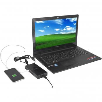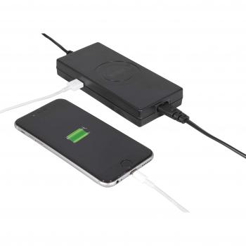 Caricatore universale da 90 W con dieci adattatori inclusi, pronto a ricaricare laptop, tablet e smartphone in qualsiasi paese. La porta USB a 2,1†...