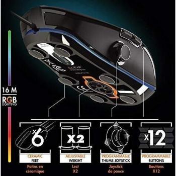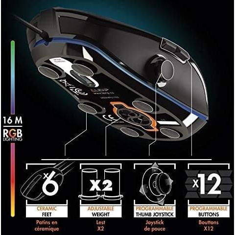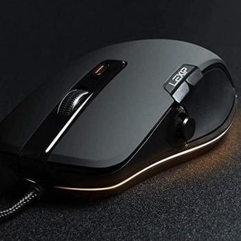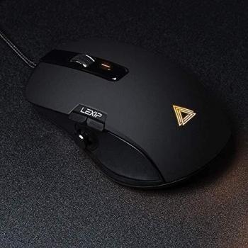 Mouse gaming Lexip Np93 Alpha con joystick interno a due assi e sensore ottico da 12000 DPI, pattini in ceramica per scorrimento fluido, peso regolabi ...