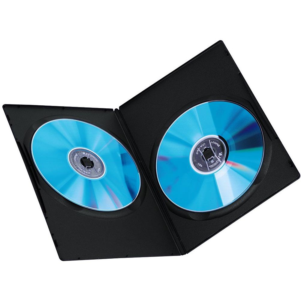 Custodia doppia nera ultra-slim che accoglie due DVD in un unico alloggiamento trasparente, garantendo protezione contro graffi e polvere pur occupand ...