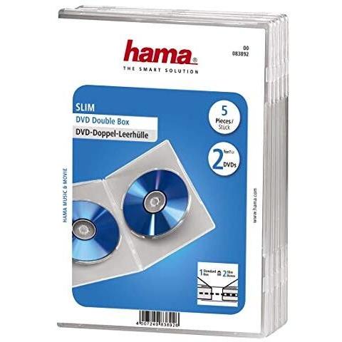 Hama Doppia custodia vuota per DVD Slim, confezione da 5, Accessori per disco ottico