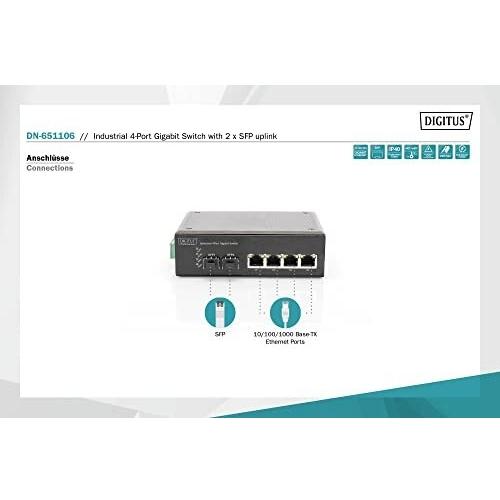 DIGITUS Switch Industrial 4P+2SFP DIN Rail Nera