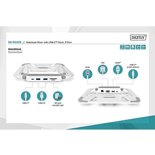 Supporto variabile per notebook con docking station USB-C™ integrata, 8 porte