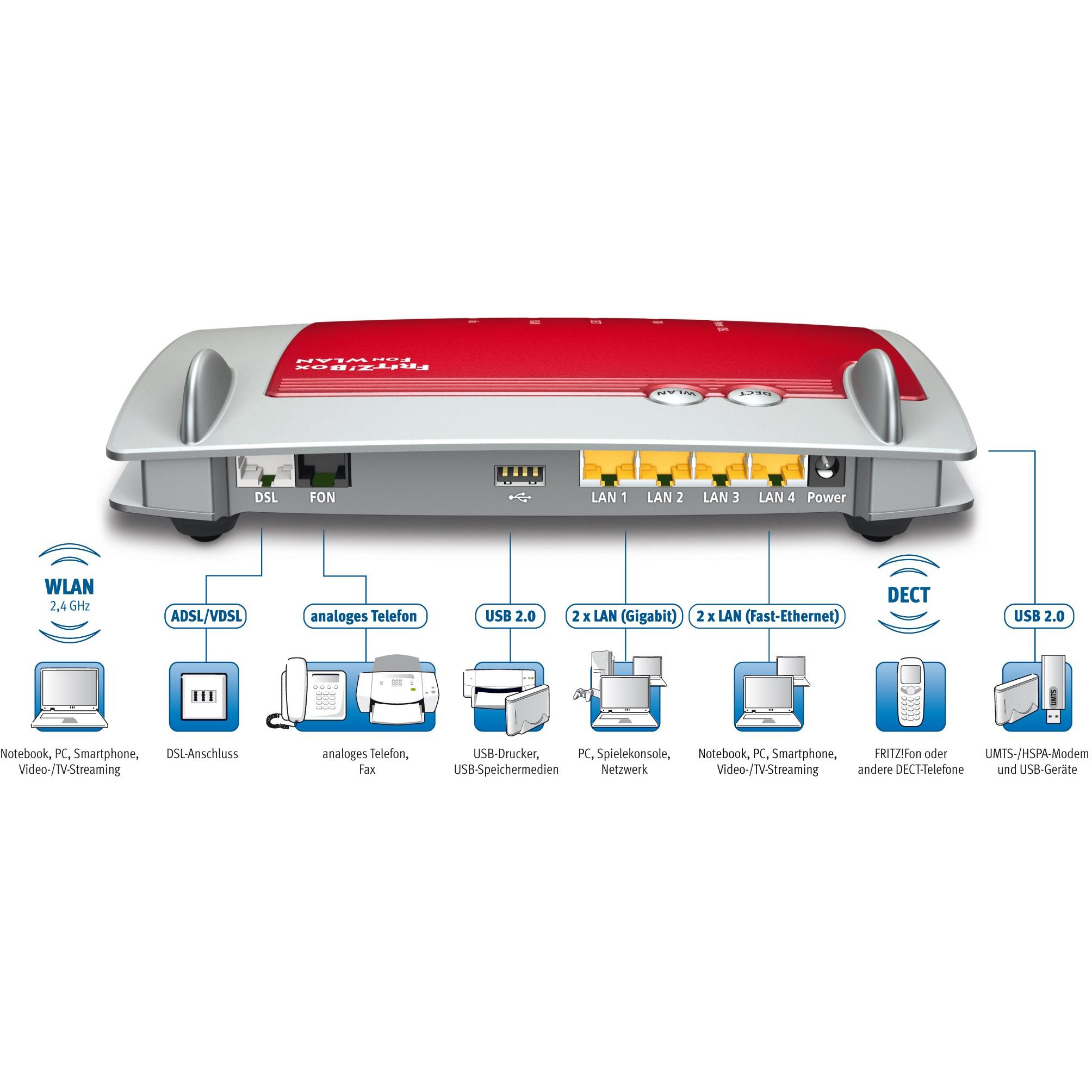 Avm Fritz!Box 3272 Wireless N450 Modem Router ADSL/ADSL2+ Dual Gigabit LAN Media Server