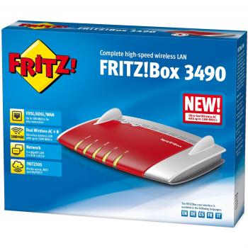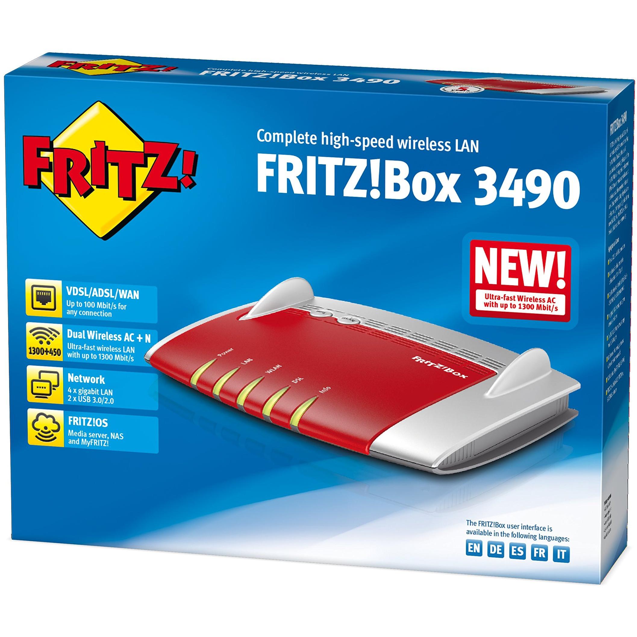 AVM FRITZ!Box 3490 International Modem Router Wireless, AC1750 Dual Band, ADSL2+, Fibra (VDSL), 4 LAN Gigabit, WAN in LAN 1, 2 USB 3.0, Interfaccia in Italiano