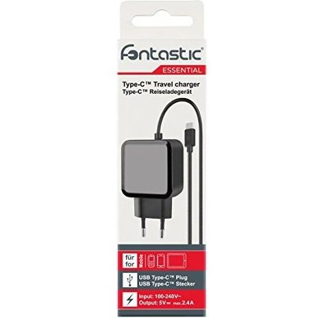 Fontastic 252310 Caricabatterie con Cavo USB-C 2,4A Presa Euro 2 Pin Nero